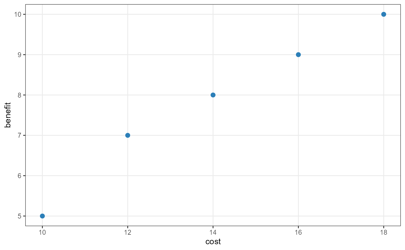 plot_tradeoff(solset, objectives = c("cost", "benefit"))